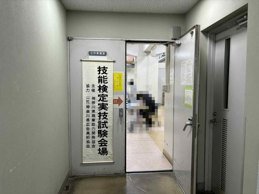 本日は技能検定実技試験(広告面粘着シート仕上げ2級、3級)を実施しました。